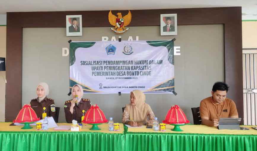 Perihal tersebut diwujudkan Kejaksaan Negeri Bantaeng melalui program pendampingan hukum dengan menggelar sosialisasi dan peningkatan kapasitas bagi Aparatur Pemerintah Desa Bonto Cinde di Aula Kantor Desa Bonto Cinde. Kamis, (27 November 2025).