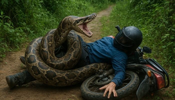 Luwu Timur – Seorang pengendara motor, di Desa Buangin, Mahalona, Kecamatan Towuti, Kabupaten Luwu Timur, Sulawesi Selatan (Sulsel), tewas dililit ular piton raksasa, Sabtu (29/11/2025).