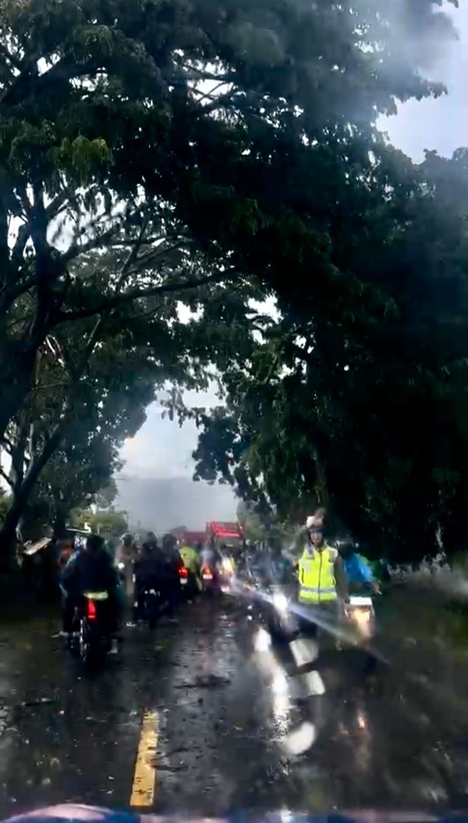 Dengan mengenakan rompi lalu lintas, Polwan tersebut secara aktif memberikan isyarat kepada para pengendara untuk melambat dan mengikuti pengaturan sementara selama proses evakuasi berlangsung. Kehadiran personel kepolisian di lokasi membuat situasi tetap kondusif serta mencegah terjadinya kecelakaan lalu lintas.