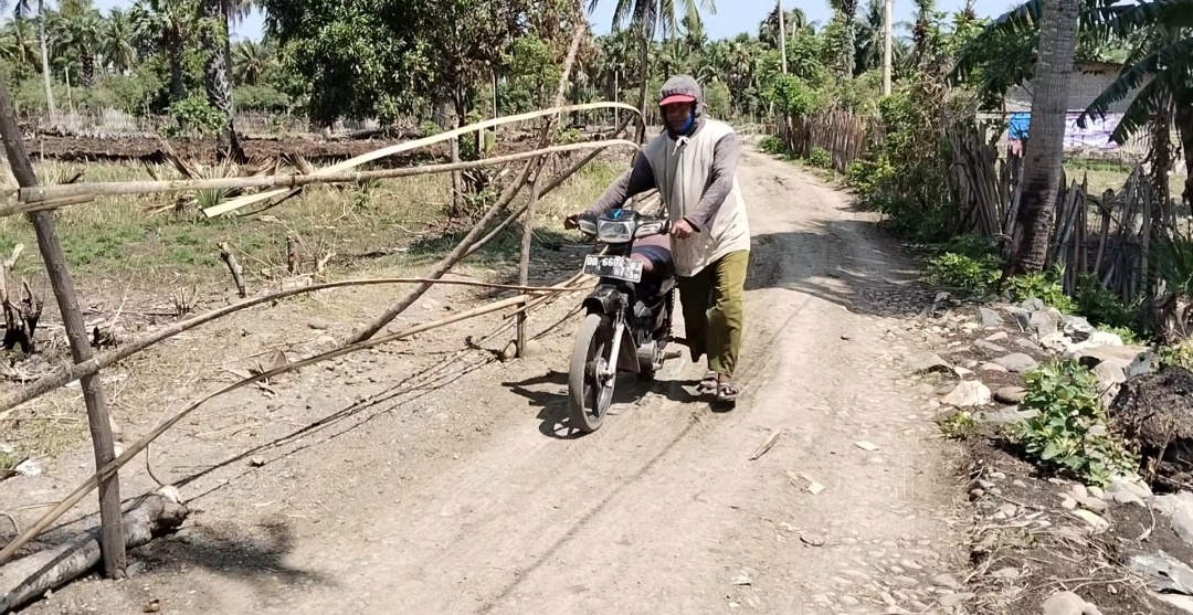 Jeneponto – Sejumlah warga di Lingkungan Manyyumbeng, Kelurahan Biringkassi, Kecamatan Binamu, Jeneponto, memagari sebagian jalan tani yang sehari-hari dilalui truk pengangkut udang milik PT Don Udang Aquaculture.