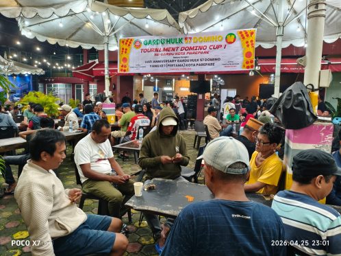 Pare-PareParepare – Perayaan hari ulang tahun (HUT) ke-1 Gardu Hulk 57 di Kota Parepare berlangsung meriah dengan digelarnya turnamen domino antar gardu yang diikuti ratusan peserta dari berbagai komunitas. Turnamen tersebut resmi dimulai pada 25 April 2026 dan berlangsung di Lagota Cafe and Resto, Kota Parepare. Memasuki babak 16 besar, pertandingan kemudian dilanjutkan keesokan harinya […]