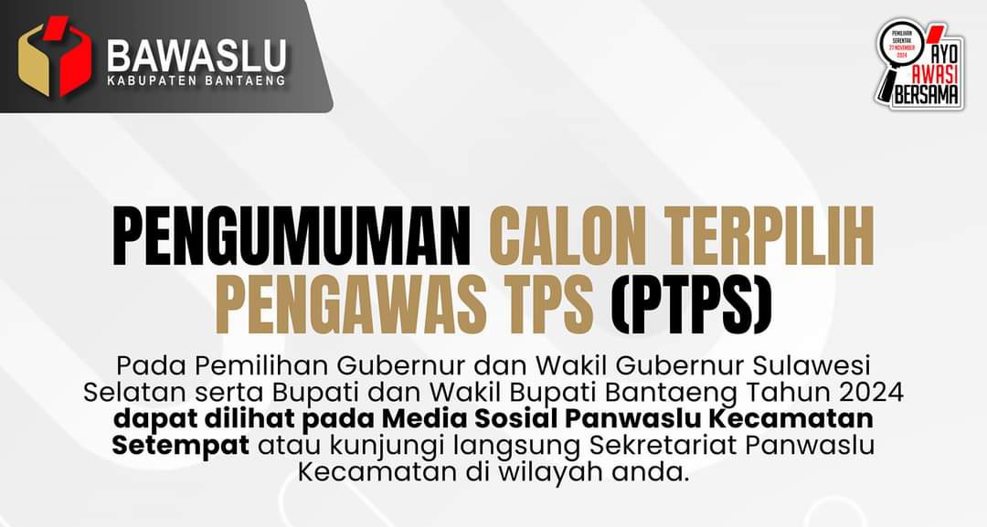 Bawaslu Bantaeng Umumkan Pengawas TPS Terpilih di 8 Kecamatan