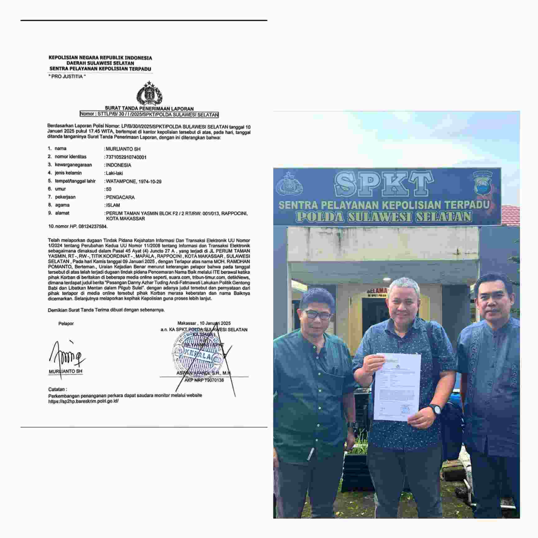 Kuasa Hukum Andalan Hati Laporkan Danny-Arsyad ke Polda Sulsel