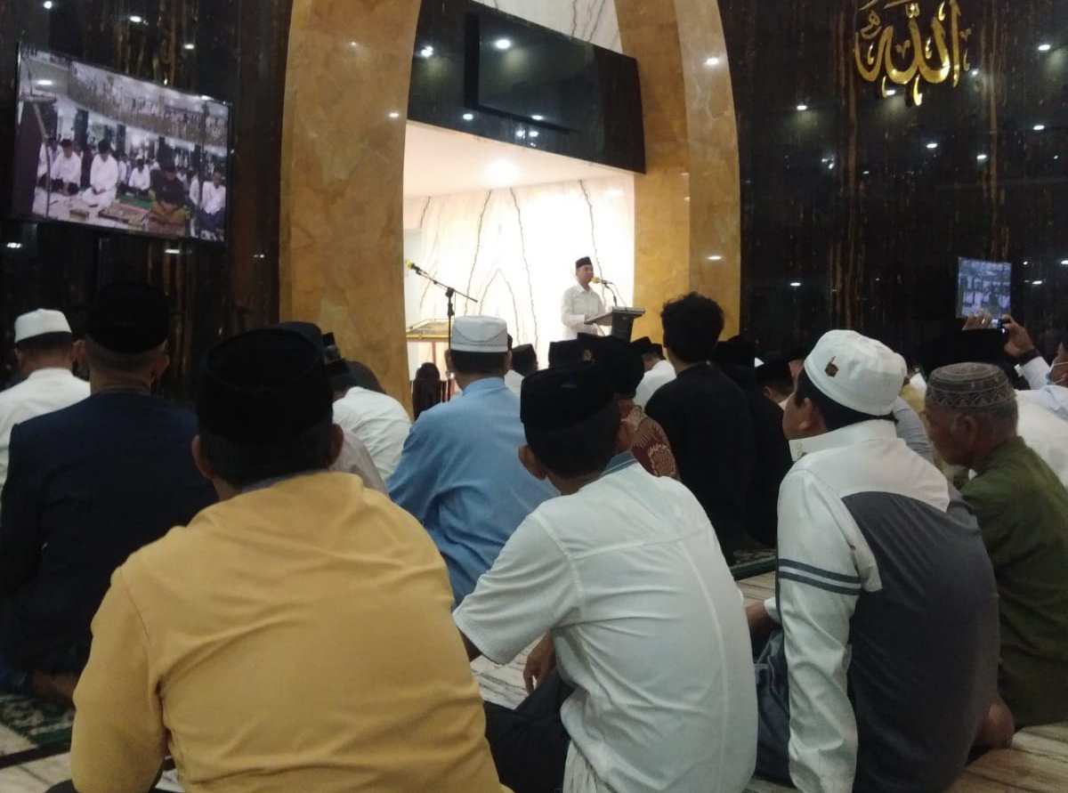 Taufan Pawe Tarawih Pertama di Masjid Terapung BJ Habibie