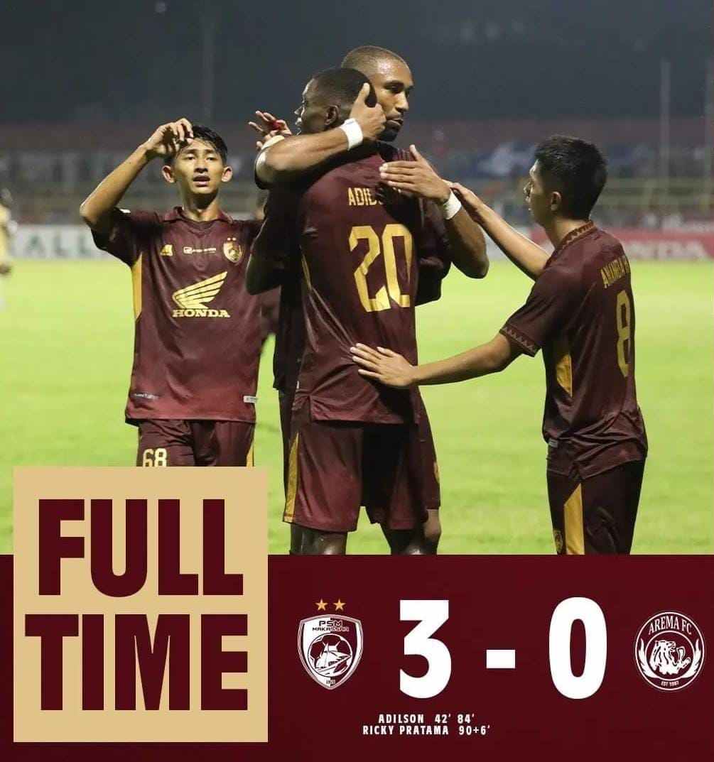 Adilson 2 Gol, Ricky Pratama 1 Gol bawa Kemenangan PSM Makassar atas Arema FC